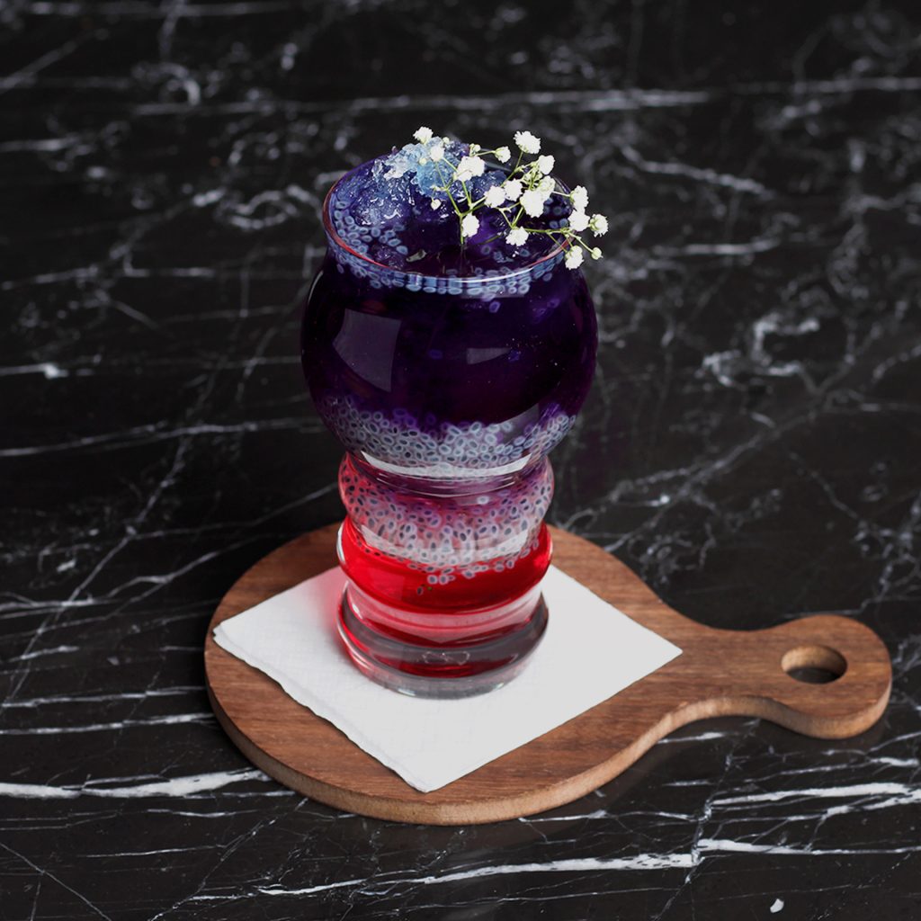 آب پرتقال+آب انار+سیروپ توت فرنگی+یخ